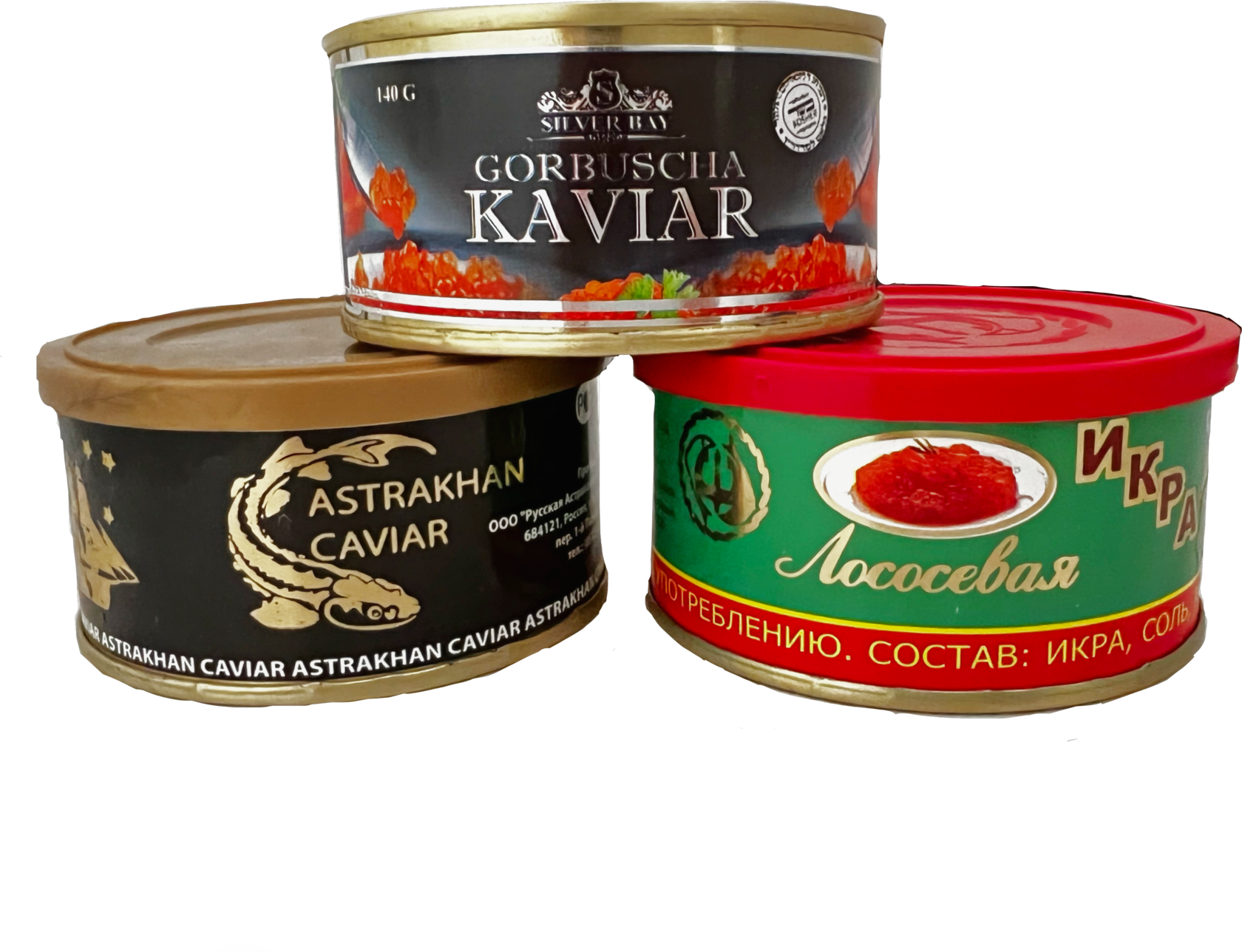 Состав: Икра горбуши, икра лососевая, икра осетровая, соль, растительное масло.